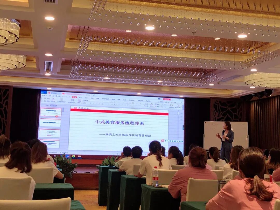 6月25号下午,真美之光全国市场运营总监郭金丝女士为大家培训了如何在疫情下建立中医中式美容店服务流程体系。